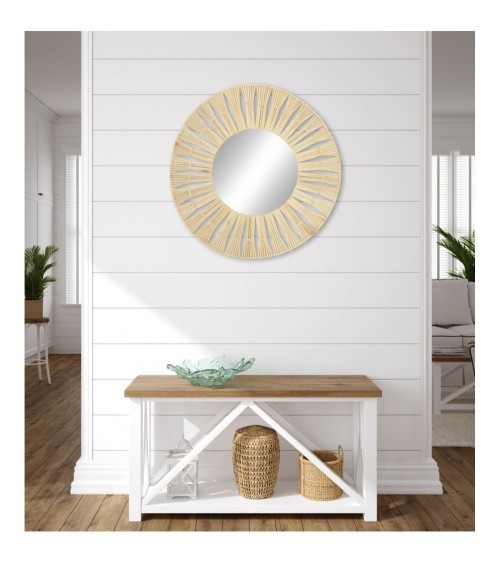 Pratique et décoratif, le miroir Malaysia donne du style à votre intérieur. Grâce à sa forme ronde, sa matière en rotin et son design en forme de soleil, le miroir Malaysia fait lunanimité. Ce miroir mural rond est le miroir indémodable et naturel par excellence ! Il sintègre parfaitement au style bohème, scandinave ou tout simplement naturel. Il apportera de la lumière et agrandira votre pièce, tout en amenant beaucoup de style.Ni trop petit, ni trop grand, son format est idéal pour les petites, les grandes pièces ou pour être exposé au.dessus de votre meuble. Moderne, tendance, ce miroir est à fixer très simplement au mur grâce à une accroche prévue à cet effet. Depuis 1975, Ceanothe perfectionne au quotidien son savoir.faire et expertise sur lencadrement, la mise en valeur photographique et la décoration murale. Une société française engagée dans une démarche éco.responsable.