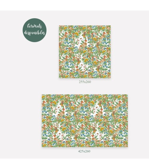 Composé de 3 lés de papier peint, chaque lés mesure 85 cm de largeur sur 260 cm de hauteur.Papier peint et procédé d'impression totalement écologique, Made in France.. Pose - Encoller directement le mur avec une colle spéciale papier peint intissé, Pose en bord à bord, ne rétracte pas lors du séchage (grande stabilité). Indéchirable, cette toile intissé se manipule aisément, facile à couper au cutter. Nettoyage - Une éponge et de l'eau savonneuse permettent d'effacer les salissures. Qualité - Papier peint 165gr/M², indéchirable , imperméable. Développement durable - Procédé d'impression à base d'encre 100 pour cent végétales sans solvant, Emission dans l'air - A+, labellisé Green Guard et Nordic Environmental. Couleurs - Des couleurs éclatantes