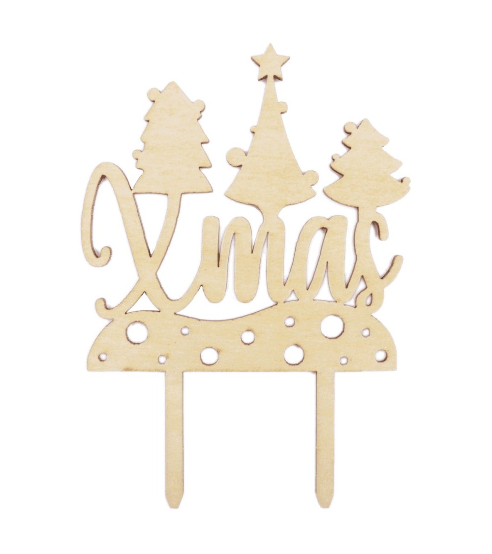 Une décoration en bois avec les inscriptions Xmas qui sublimera votre dessert à Noël ou tout autre gâteau pendant les fêtes de fin d'année ! Pour décorer votre gâteau, il suffit de le planter au sommet ou au milieu de votre pâtisserie. Matière - Bois apte au contact alimentaire. Dimensions - 13 x 8,9 x 0,2 cm