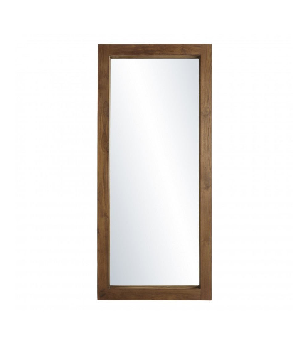 Miroir rectangulaire marron 108x80cm bois teck. Dimensions - 80 x 8 x 180 cm. Article en Teck/Verre/Contre plaqué (arrière). Cet article est composé de bois recyclé ! Le bois recyclé est un bois récupéré de vieilles charpentes, de coques de bateaux ou tout bois de récupération ayant déjà eu une longue vie. C'est ce qui lui donne cet aspect vieilli et authentique avec ses imperfections qui font tout son charme.   Acquérir du bois recyclé est une initiative écoresponsable qui permet de lutter contre la déforestation. Optez pour ce grand miroir rectangulaire en teck. Ses larges dimensions sont optimales pour une grande pièce. Il apportera de la lumière à votre intérieur.