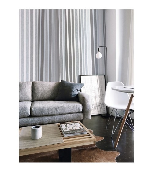Des rayures colorées, un aspect textile et un graphisme contemporain pour ce papier peint panoramique.Papier peint Intissé Lavable Lisse Mat 150g sans PVC à encoller . Encres Latex sans solvant et sans COV . Fabrication Française4 couleurs aux choix - Gris, Couleurs, Beige et Bleu clair5 tailles au choix - M - Lg 170 x Ht 250 cm en 2 lés de 85 cmL - Lg 255 x Ht 250 cm en 3 lés de 85 cmXL - Lg 340 x Ht 250 cm en 4 lés de 85 cmXXL - Lg 425 x Ht 250 cm en 5 lés de 85 cm3XL - Lg 510 x Ht 250 cm en 6 lés de 85 cmPose bord à bord pour une pose facile.DESCRIPTIONIntissé à base de fibres cellulosiques et polyester liées par un acrylique sans PVC 150g. Impression encres Latex sans solvant et sans COV.PROPRIETESAspect mat lisse (calandré). Très bon rendu des couleurs. Très bonne stabilité dimensionnelle. Masque les petites imperfections du mur, la préparation du mur est simplifiée. Bonne résistance à la déchirure lors de la pose. Pose facile. Se nettoie avec un léger coup d'éponge à l'eau savonneuse.APPLICATIONS Bien vérifier les couleurs, les défauts éventuels et le raccordement des lés. Déplier les lés en les posant au sol et en vérifiant si les bords correspondent bien.