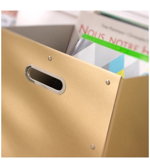 Lot de 4 cubes de rangement en Kraft finition métal pliable avec 1 poignée ovale acier.Idéal pour le rangement des petits objets comme des jouets ou des petits coussins, ce cube de rangement beige s'assemble par pressions métalliques.Dimensions - 28 x 28 x 27 cmMatière - Kraft et arêtes en métal