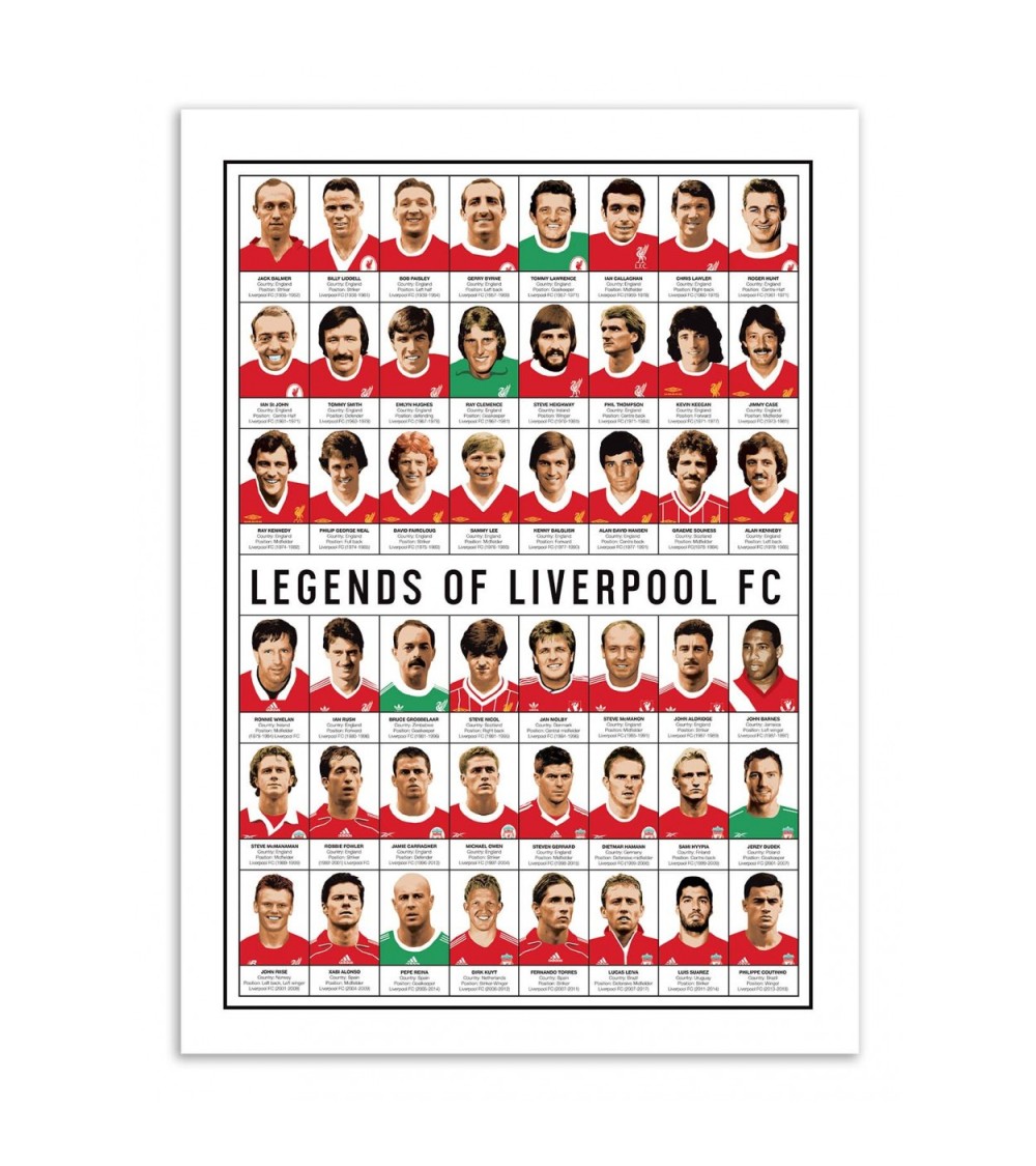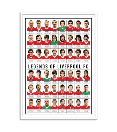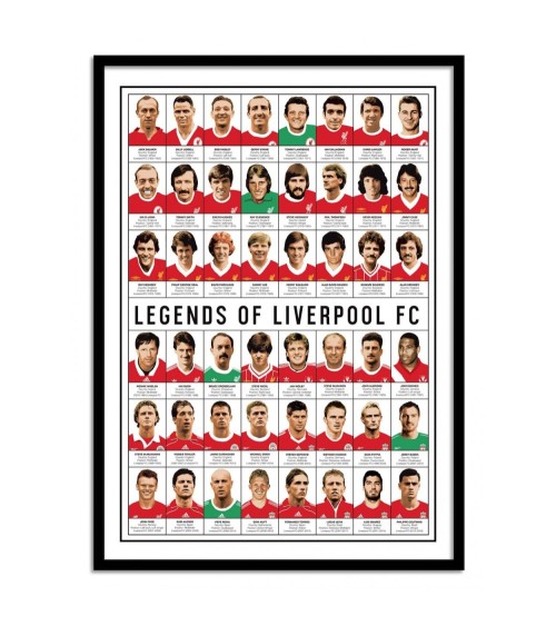 LES AFFICHES - Nos affiches sont imprimées en France, ou Union Européenne.Papier issu de forêts certifiées FSC.Affiche imprimée sur papier couché mat 250g, Haute Définition.Pour les formats d'affiches 30x40 cm - contient des marges blanches de 1,5 cm.Pour les formats d'affiches 50x70 cm - contient des marges blanches de 2 cm.OPTION CADRES - Nos cadres en bois sont fabriqués en France.Comprend une vitre en verre acrylique.Dimensions des cadres en bois 30x40 cm - Epaisseur du cadre - 15 mm, Profondeur du cadre - 20 mmDimensions des cadres en bois 50x70 cm - Epaisseur du cadre - 15 mm. Profondeur du cadre - 20 mm. Découvrez cette mozaïque de 48 footballeurs mythiques de Liverpool sur une seule affiche. Olivier Bourdereau expose ces joueurs cultes comme Gerrard, Owen, Xabi Alonso, et bien d'autres, dans une composition de type encyclopédique où l'on retrouve les informations importantes de nos athletes préférés. Convient parfaitement à tous les fans de Foot !