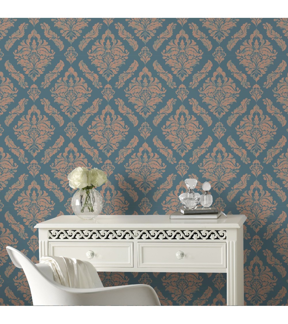 Papier peint intissé Damaris métallique turquoise 1005x52cm