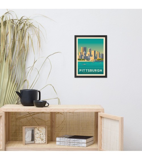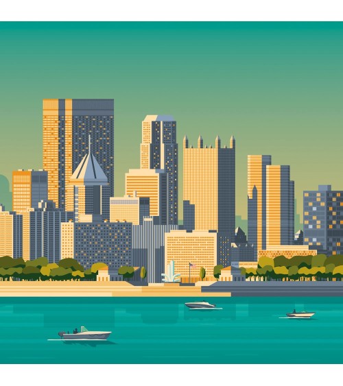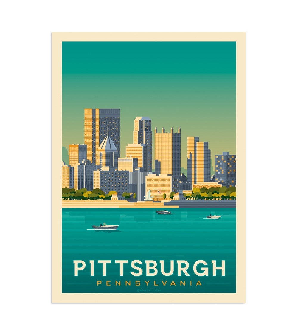 Une affiche de voyage au style vintage de la ville de Pittsburgh aux Etats.Unis. Ce poster au design rétro et coloré trouvera sa place dans la décoration intérieure de votre maison, dans une chambre denfant ou encore votre salon et salle de jeux. Produit illustré, imprimé et conditionné en France.