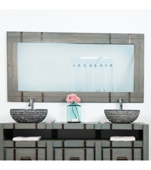 Pour une salle de bain tendance optez pour le grand miroir en bois massif mindi patiné gris ! Cet élégant accessoire déco saura vous séduire de par le mélange des matières du bois et du métal. Votre espace bain se transforme en un lieu design à l'esprit loft! Le style industriel s'invite dans votre salle d'eau et crée une pièce unique. Ce miroir existe également en naturel et patiné blanc. Il compléte parfaitement le meuble en bois massif mindi de salle de bain gris de la même collection. Dimensions miroir Longueur - 160 cm Epaisseur - 2 cm Hauteur - 80 cm