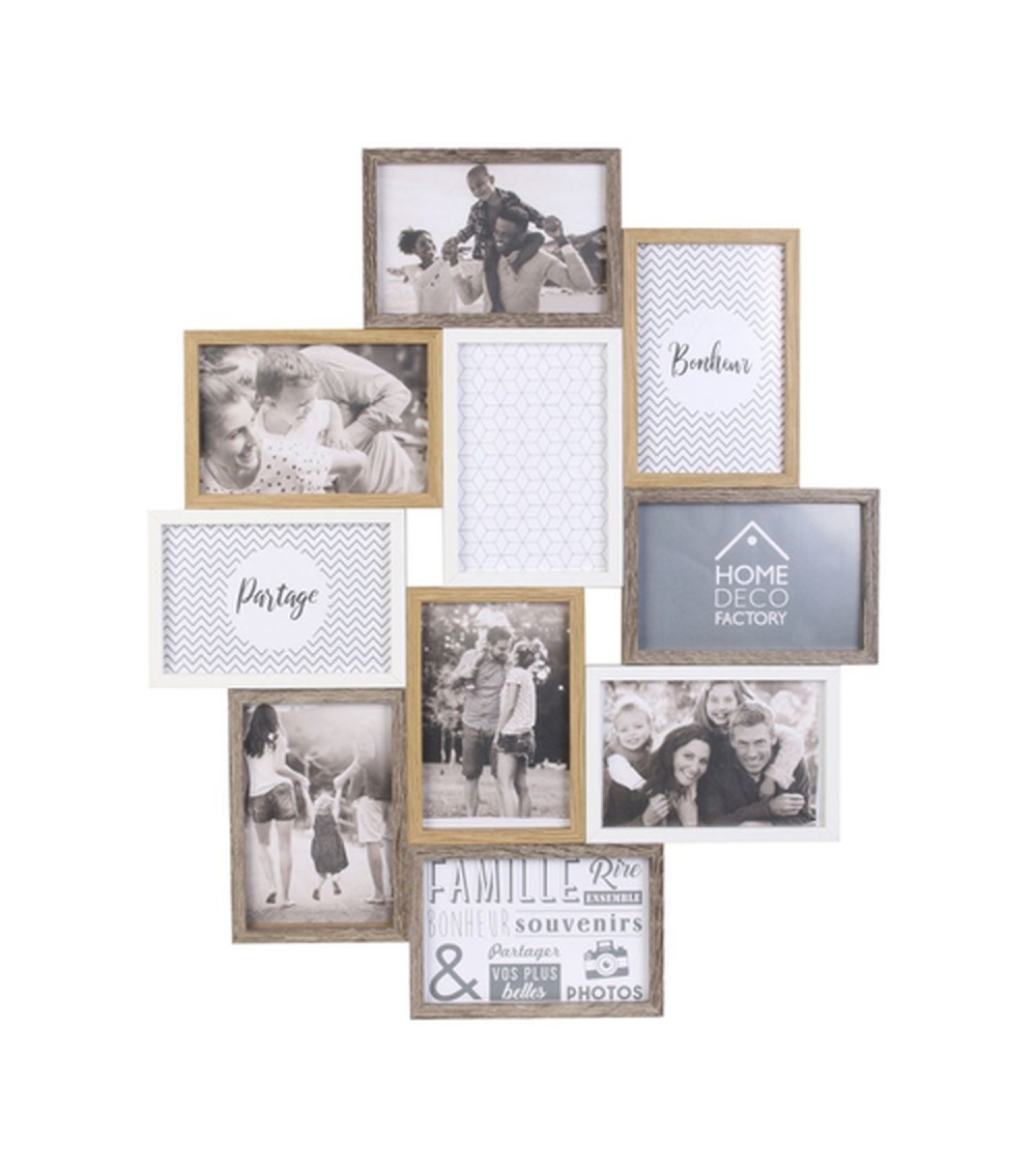 Exposez vos 10 plus beaux souvenirs dans ce pêle.mêle au design scandinave.FICHE TECHNIQUE. Pêle.mele en MDF.. Convient pour dix photos de 10 x 15 cm.CARACTERISTIQUES TECHNIQUES. Dimensions - L. 47 x l. 56 x E. 3 cm.. Poids - 1,1 kg.