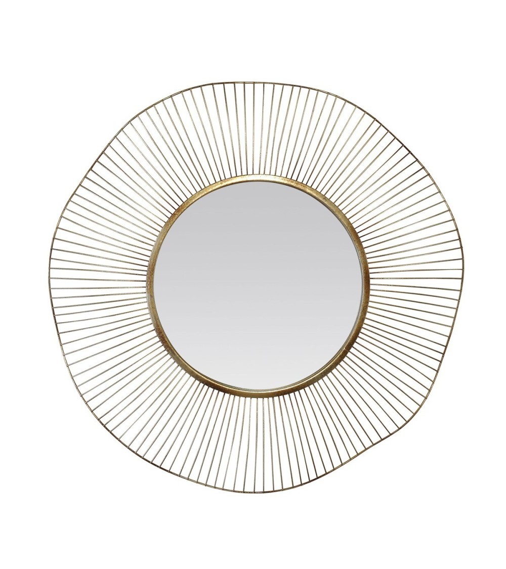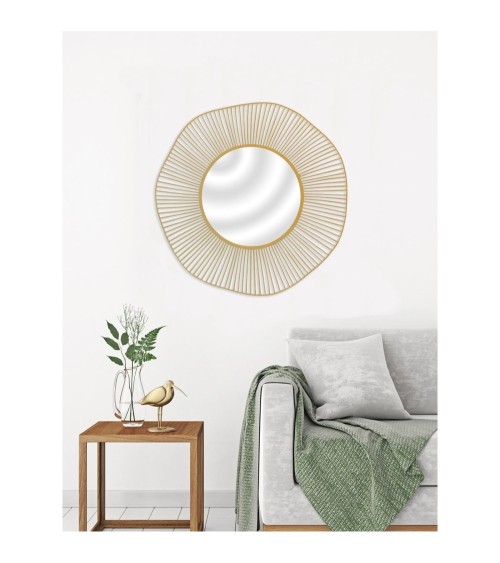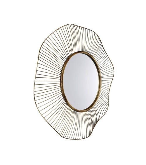 Miroir design rond de couleur dorée.Diamètre du miroir intérieur - 36cmDiamètre extérieur - 75cmPoids - 2,5kgComposition détaillée - Métal, verre Avec sa gamme de miroirs soleil EMDE vous propose des produits dans l'air du temps qui s'inspirent.