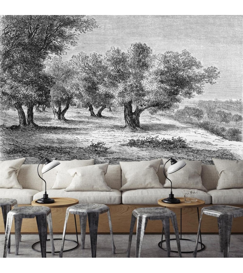 Papier peint panoramique Gravure les oliviers 390x270cm