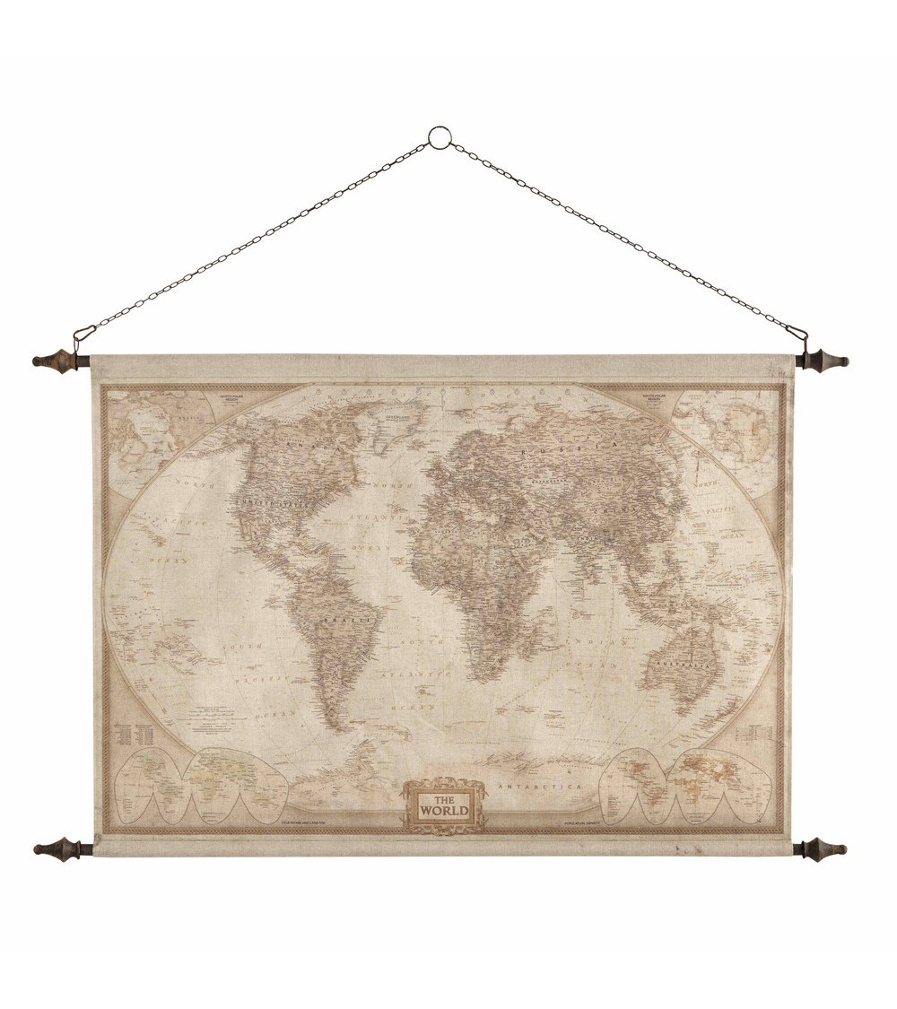 Pour les passionnés de voyage, cette déco murale carte du monde 117x129 EXPLORATEUR sera un clin d'il à vos diverses explorations. Présentée comme un parchemin, la carte est fixée à une structure en métal. Le détail déco - son impression sépia. Notre conseil - exposez cette toile à dérouler dans un bureau classique ou dans une chambre de baroudeur pour inviter à la découverte.