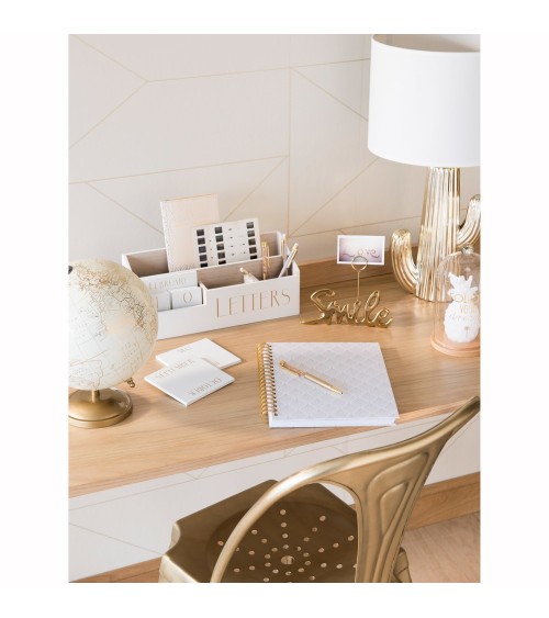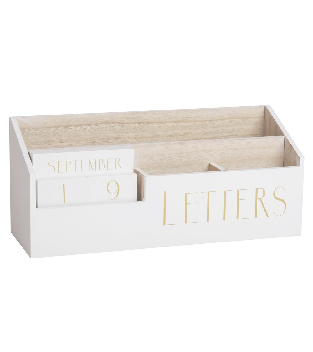 Et si vous alliez fonctionnalité et style avec le porte.courrier calendrier perpétuel blanc? Pratique, il vous servira à la fois à ranger vos crayons, stylos tout en vous permettant d'entreposer vos enveloppes, lettres et carnet. D'un autre côté, vous pourrez mettre la date du jour grâce à son calendrier perpétuel. Chic et tendance, ce porte.courrier trouvera une place de choix aussi bien dans un bureau au style scandinave que dans une pièce plus classique.