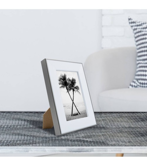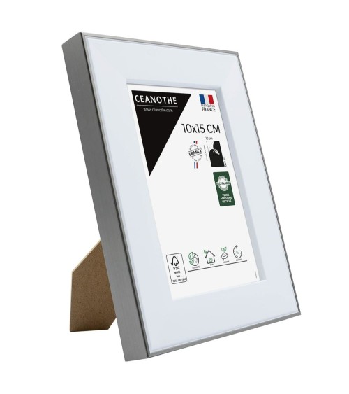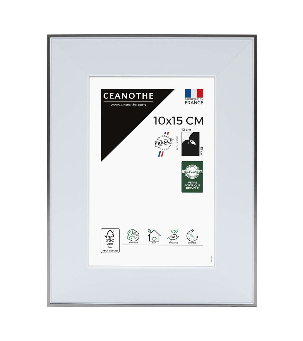 Protégez et mettez en avant toutes vos photos grâce au cadre Acier Newton et son verre acrylique recyclé. Ce cadre photo format 10x15 cm est idéal pour mettre en avant des photos, posters, affiches ou carte postale. Ajoutez un passe.partout pour protéger et sublimer dautres formats photos. La gamme propose différentes tailles et couleurs. La couleur blanche et contour Acier de ce cadre est simple, moderne et indémodable. Elle fait ressortir toutes vos plus belles uvres et photos. Cadre Home déco facile à accrocher, il trouvera naturellement sa place dans toutes les pièces de la maison - hall dentrée, salon, chambres. Le cadre sublimera facilement un grand nombre de photos avec une touche déco contemporaine et tendance. Ce cadre photo 10x15 cm est en résine recyclée, un matériau solide, léger et esthétique. Ses dimensions extérieures sont 200x150x25 mm et se compose de 4 baguettes de qualité. Il apportera de la profondeur à vos photos avec un rendu design, moderne et très qualitatif. Ce cadre apporte une jolie touche décoration industrielle. Les finitions de ce cadre sont soignées. Le style simple et tendance de cette gamme fait de ce cadre une valeur sûre que vous garderez longtemps.Fabriqués dans le respect de lenvironnement, tous les cadres design de la collection Newton sont confectionnés à partir de résine recyclée, léger et 100 pour cent recyclable, parfait pour la décoration. Depuis 1975, Ceanothe perfectionne au quotidien son savoir.faire et expertise sur lencadrement, la mise en valeur photographique et la décoration murale. Une société française engagée dans une démarche éco.responsable.