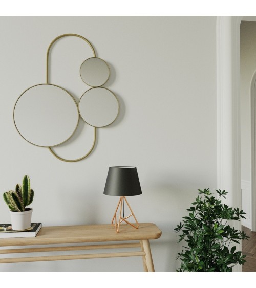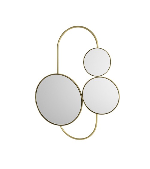 Miroir chic et déstructuré Marie-Antoinette, couleur orAvec le miroir mural doré Marie-Antoinette, vous tenez entre les mains un très bel objet de décoration, créatif, original et résolument élégant. Son jeu de miroirs sort de lordinaire, à la fois chic et déstructuré, riche en mouvement. Ce miroir de grande taille est en mesure de constituer à lui seul une vraie pièce maîtresse de votre intérieur.VerreStructure en métal de couleur or et bois d'ingénierieHauteur : 91 cmLongueur : 66 cmProfondeur : 2,5 cmMiroir en métal doré Marie-Antoinette, une pièce de choix?Le grand miroir mural Marie-Antoinette est un élément décoratif à part entière, à mettre en scène sans demi-mesure. Il y a deux bonnes raisons à cela : dune part, sa hauteur de 91 cm le rend pleinement capable dhabiller un mur?; dautre part, il a une identité qui flirte avec lobjet artistique et mérite quon lui accorde de lattention. Que vous décidiez de lutiliser comme un miroir de salon, un miroir de chambre, ou comme un miroir dédié au dressing, consacrez-lui un espace bien à lui. Vous pouvez limaginer, par exemple, seul au-dessus dun buffet, ou encore à proximité du très contemporain fauteuil blanc Bella. Sa conception tout à fait originale et créative vous donne l'avantage de 3 miroirs dorés, donc dune possibilité démultipliée de jouer avec les perspectives. Profitez-en?!Miroir mural Marie-Antoinette, des courbes faciles à intégrerDoté dun élégant design, souligné en beauté par sa couleur dorée, ce miroir mural de grande taille vous offre, selon vos affinités, soit une touche contemporaine, soit une atmosphère de boudoir. Dans le premier cas, mariez-le avec des éléments atypiques, comme la panthère décorative noire Salva. Cultivez les courbes minimalistes, les fibres naturelles et les tons neutres, insistez sur les lignes et les formes.