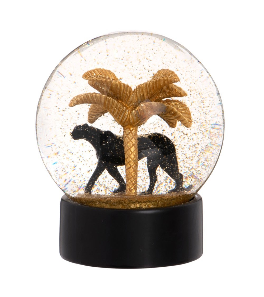 Boule à neige dorée palmier et panthère noire
