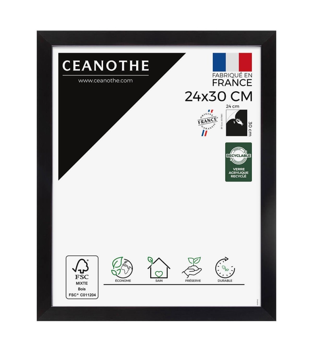 Protégez et mettez en avant toutes vos photos grâce au cadre Precious et son verre acrylique recyclé. Ce cadre photo format 24x30 cm est idéal pour mettre en avant des photos, posters ou affiches de 24x30 cm. Ajoutez un passe-partout pour protéger et mettre en avant dautres formats de photos et posters avec ce cadre.La couleur Gris avec finition laquée de ce cadre est moderne et indémodable. Elle fait ressortir toutes vos plus belles uvres et photos tout en apportant un effet élégant à votre intérieur. Cadre Home déco facile à accrocher, il trouvera naturellement sa place dans toutes les pièces de la maison : hall dentrée, salon, chambres à coucher. Le cadre sublimera facilement un grand nombre de photos avec une touche déco très tendance. Ce cadre photo 24x30 cm est en résine recyclée, un matériau solide et esthétique. Ses dimensions extérieures sont 327x267x22 mm et se compose de 4 baguettes travaillées de qualité. Il apportera de la profondeur à vos photos avec un rendu design très qualitatif. Les finitions de ce cadre sont soignées. La couleur de cette gamme Precious fait de ce cadre une valeur sûre que vous garderez longtemps. Depuis 1975, Ceanothe perfectionne au quotidien son savoir-faire et expertise sur lencadrement, la mise en valeur photographique et la décoration murale. Une société française engagée dans une démarche éco-responsable.