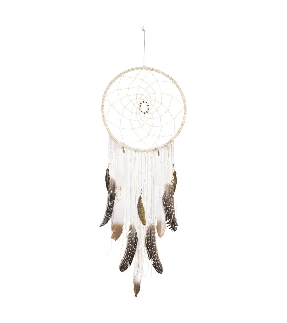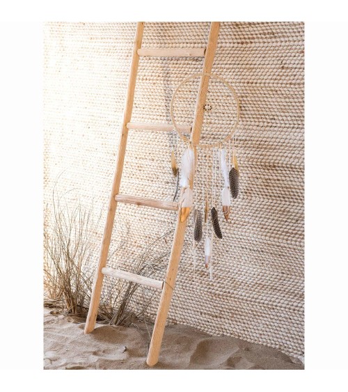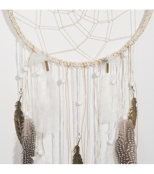 Jouez avec l'esprit boho chic dans votre intérieur avec l'attrape-rêves à plumes 76x28 JALANE. On dit oui à ses touches de doré discrètes et pleines de charme. Avec ses nombreuses plumes, la douceur est assurée. A la pointe de la tendance du moment, cet attrape-rêves pourra être placé dans tous les types de déco. Dans une pièce ethnique, bohème chic ou même orientale, il fera son petit effet. Un élément qui fera mouche, quelle que soit la pièce de vie où il se trouvera.