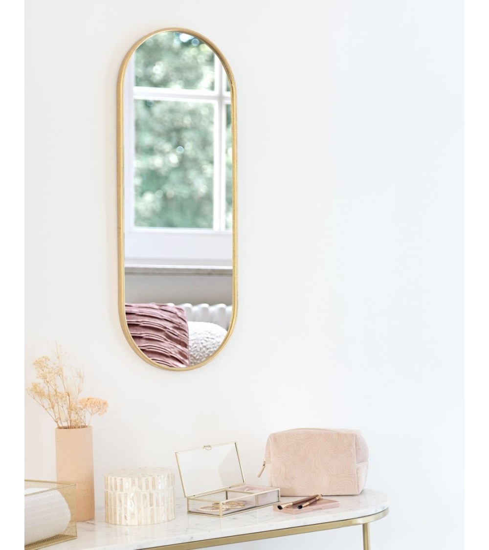Miroir ovale en métal doré effet feuilles d'or 30x80
