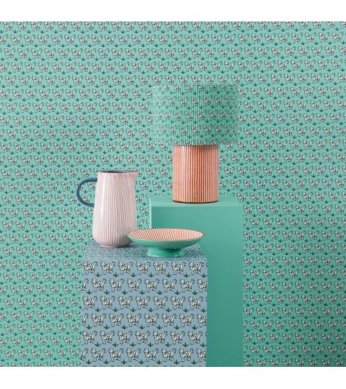 Papier peint BRAI x Maisons du Monde motifs à rayures et tigres bleus 300x350
