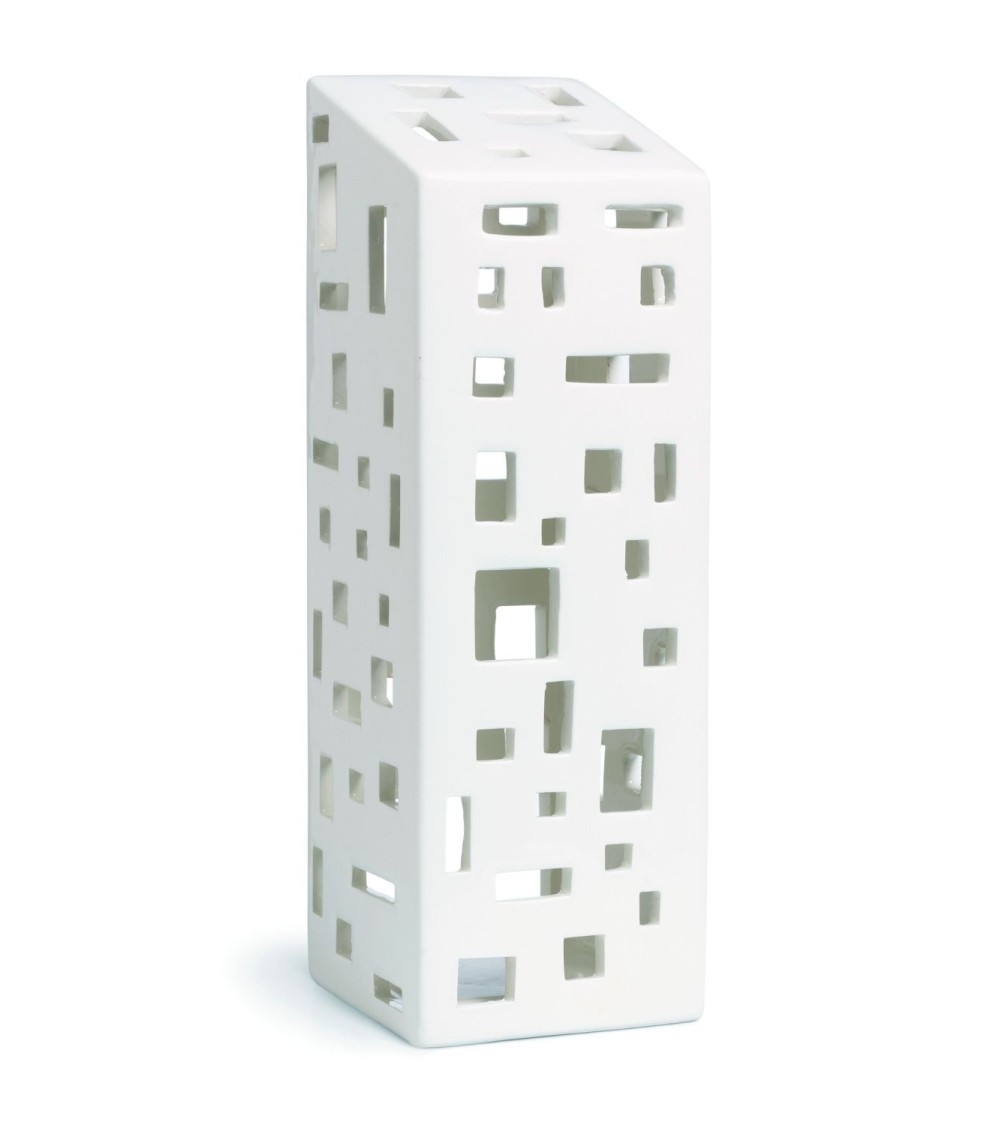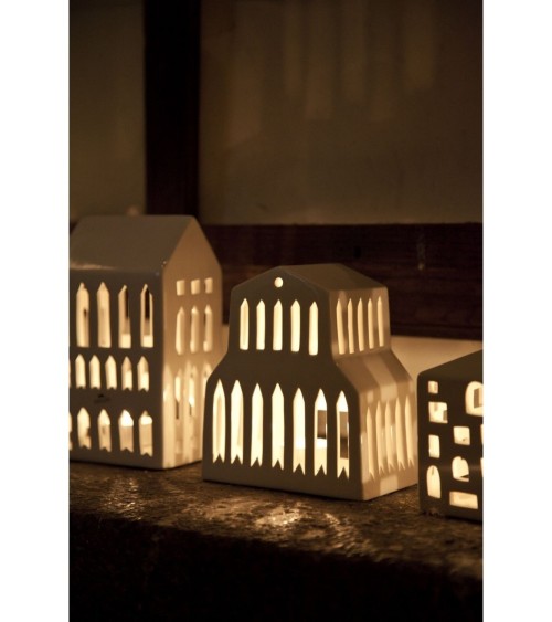 La série de luminaires Urbania du fabricant danois Kähler Design a été conçue par le duo de designers Mette Bache et Barbara Bendix Becker et représente différentes maisons de ville et églises sous forme abstraite. A l'intérieur des maisons il y a assez d'espace pour une bougie à thé, qui éclaire les maisons de façon lumineuse. Cela crée une lumière chaleureuse et chaleureuse pour que les maisons rayonnent de confort et de romantisme et remplissent votre pièce de rayons dorés de lumière et de silhouettes. La conception des maisons est basée sur l'atelier Kähler Design ainsi que sur les entrepôts et les basiliques romaines de New York. Il reflète la créativité et l'atmosphère palpitante des villes. Créez une petite ville brillante ou laissez les maisons travailler individuellement - Ainsi, vous êtes assurés d'attirer l'attention avec les maisons de lumière Urbania de Kähler Design.