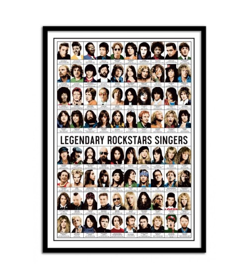LES AFFICHES : Nos affiches sont imprimées en France, ou Union Européenne.Papier issu de forêts certifiées FSC.Affiche imprimée sur papier couché mat 250g, Haute Définition.Pour les formats d'affiches 30x40 cm : contient des marges blanches de 1,5 cm.Pour les formats d'affiches 50x70 cm : contient des marges blanches de 2 cm.OPTION CADRES : Nos cadres en bois sont fabriqués en France.Comprend une vitre en verre acrylique.Dimensions des cadres en bois 30x40 cm : Epaisseur du cadre : 15 mm, Profondeur du cadre : 20 mmDimensions des cadres en bois 50x70 cm : Epaisseur du cadre : 15 mm. Profondeur du cadre : 20 mm. Une exclusivité Wall Editions. Découvrez une mozaïque de 80 portraits regroupant les plus grandes rockstars sur une seule affiche. Olivier Bourdereau réunit ces chanteurs cultes, comme Jimi Hendrix, Jim Morrison, David Bowie, Mick Jagger, Kurt Cobain et bien d'autres, dans une composition de type encyclopédique où l'on retrouve les informations importantes de nos icônes préférées. Convient parfaitement à tous les fans de Rock !