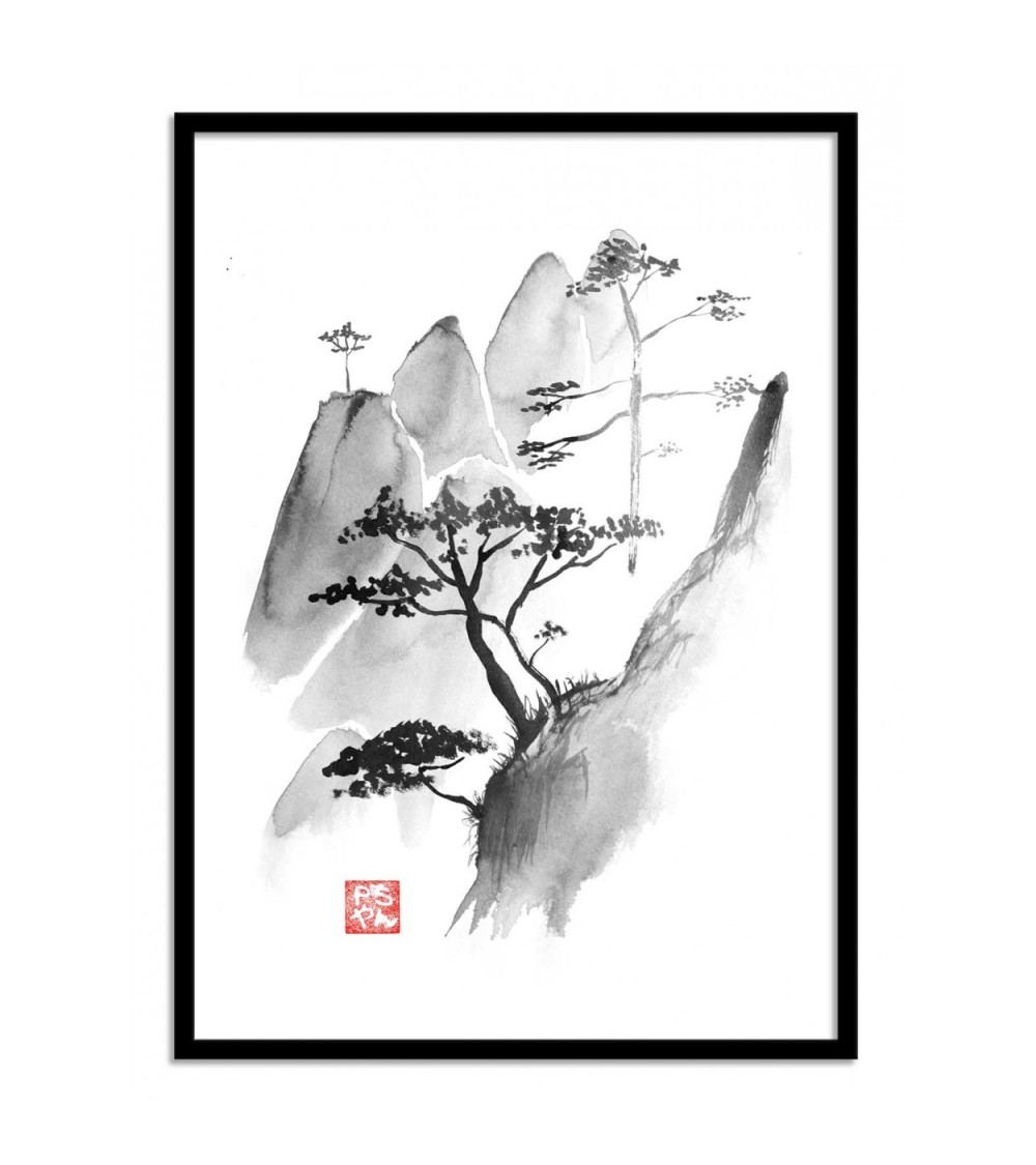 LES AFFICHES : Nos affiches sont imprimées en France, ou Union Européenne.Papier issu de forêts certifiées FSC.Affiche imprimée sur papier couché mat 250g, Haute Définition.Pour les formats d'affiches 30x40 cm : contient des marges blanches de 1,5 cm.Pour les formats d'affiches 50x70 cm : contient des marges blanches de 2 cm.OPTION CADRES : Nos cadres en bois sont fabriqués en France.Comprend une vitre en verre acrylique.Dimensions des cadres en bois 30x40 cm : Epaisseur du cadre : 15 mm, Profondeur du cadre : 20 mmDimensions des cadres en bois 50x70 cm : Epaisseur du cadre : 15 mm. Profondeur du cadre : 20 mm. La maîtrise de l'esquisse japonaise est la spécialité de l'artiste Pechane Sumie. A travers son art nous voyageons pour venir à la rencontre de la culture nipponne, si distinguée! Sur cette affiche d'art nous pouvons contempler ce paysage traditionnel japonais composé de falaises qui s'élèvent à la verticale jusqu'au ciel et la grâce des arbres qui les ornent. Quelle délicate poésie! Ce poster est une décoration idéale pour les amoureux de l'esthétisme venu du Japon.