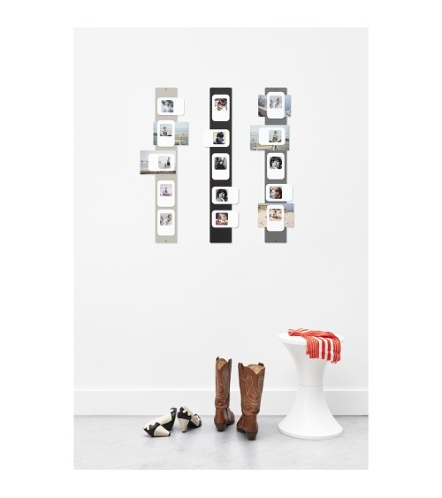 A fixer horizontalement ou verticalement au mur, le T5 est un pèle mele original. Pour présenter sous les magnets en caoutchouc vos photos préférées. Matière : tôle laquée Dimensions : 68 x 9,6cm
