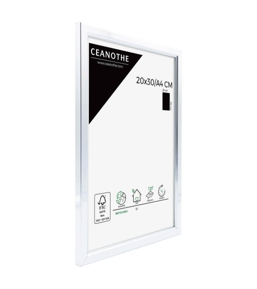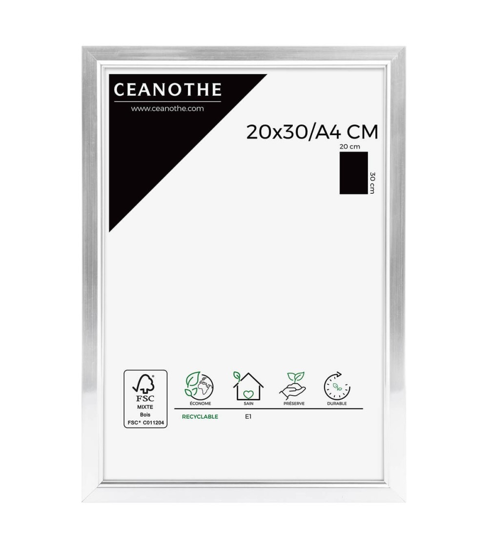 Protégez et mettez en avant toutes vos photos grâce au cadre Aluminium Primo et son verre minéral. Ce cadre photo format 20x30 cm est idéal pour mettre en avant des photos, posters ou affiches grand format de 20x30 cm. Ajoutez un passe-partout pour protéger et mettre en avant dautres formats de photos et posters avec ce cadre. La couleur Aluminium de ce cadre est simple et indémodable. Elle fait ressortir toutes vos plus belles uvres et photos tout en apportant une touche luxe et élégant à votre intérieur. Cadre Home déco facile à accrocher, il trouvera naturellement sa place dans toutes les pièces de la maison : hall dentrée, salon, chambres à coucher. Le cadre sublimera facilement un grand nombre de photos avec une touche déco classique ou moderne, tout en raffinement. Ce cadre photo Aluminium 20x30 cm est en résine recyclée, un matériau solide, nature et esthétique. Ses dimensions extérieures sont 318x218x11 mm et se compose de 4 baguettes travaillées avec une pente. Il apportera de la profondeur à vos photos avec un rendu design très qualitatif. Les finitions de ce cadre sont soignées. La couleur de cette gamme Primo font de ce cadre une valeur sûre que vous garderez longtemps. Fabriqués dans le respect de lenvironnement, tous les cadres de la collection Primo sont confectionnés en résine recyclée. Parfait pour la décoration, il est léger et 100% recyclable. Depuis 1975, Ceanothe perfectionne au quotidien son savoir-faire et expertise sur lencadrement, la mise en valeur photographique et la décoration murale. Une société française engagée dans une démarche éco-responsable.