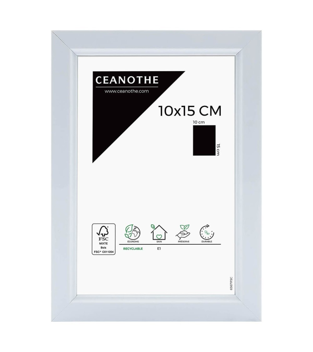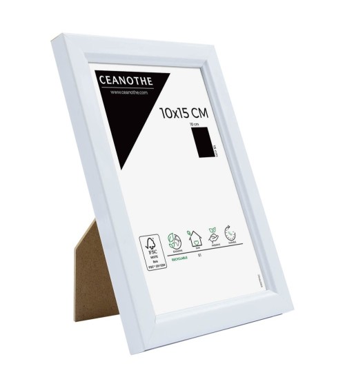 Protégez et mettez en avant toutes vos photos grâce au cadre Blanc Primo et son verre minéral. Ce cadre photo format 10x15 cm est idéal pour mettre en avant des photos, posters ou affiches grand format de 10x15 cm. Ajoutez un passe-partout pour protéger et mettre en avant dautres formats de photos et posters avec ce cadre. La couleur Blanc de ce cadre est simple et indémodable. Elle fait ressortir toutes vos plus belles uvres et photos tout en apportant une touche luxe et élégant à votre intérieur. Cadre Home déco facile à accrocher, il trouvera naturellement sa place dans toutes les pièces de la maison : hall dentrée, salon, chambres à coucher. Le cadre sublimera facilement un grand nombre de photos avec une touche déco classique ou moderne, tout en raffinement. Ce cadre photo Blanc 10x15 cm est en résine recyclée, un matériau solide, nature et esthétique. Ses dimensions extérieures sont 170x120x11 mm et se compose de 4 baguettes travaillées avec une pente. Il apportera de la profondeur à vos photos avec un rendu design très qualitatif. Les finitions de ce cadre sont soignées. La couleur de cette gamme Primo font de ce cadre une valeur sûre que vous garderez longtemps. Fabriqués dans le respect de lenvironnement, tous les cadres de la collection Primo sont confectionnés en résine recyclée. Parfait pour la décoration, il est léger et 100% recyclable. Depuis 1975, Ceanothe perfectionne au quotidien son savoir-faire et expertise sur lencadrement, la mise en valeur photographique et la décoration murale. Une société française engagée dans une démarche éco-responsable.