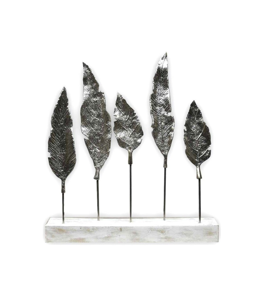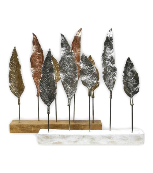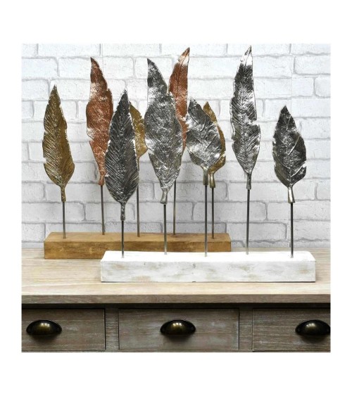 Les feuilles décoratives ABACHI sont conçues pour apporter évasion et tropique à votre pièce. Ces longues feuilles couleur or/bronze ou argent, sur leur socle blanc ou en bois naturel harmoniseront votre havre de paix. Leur dimension, 50,5x8, 5x52, 5cm, assure une impression de mouvement difficilement oubliable !