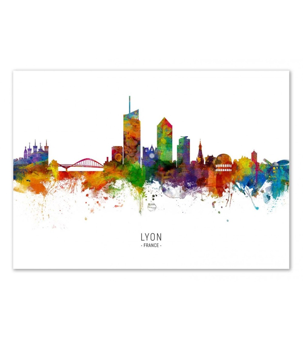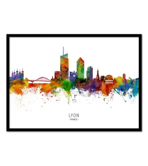 LES AFFICHES : Nos affiches sont imprimées en France, ou Union Européenne.Papier issu de forêts certifiées FSC.Affiche imprimée sur papier couché mat 250g, Haute Définition.Pour les formats d'affiches 30x40 cm : contient des marges blanches de 1,5 cm.Pour les formats d'affiches 50x70 cm : contient des marges blanches de 2 cm.OPTION CADRES : Nos cadres en bois sont fabriqués en France.Comprend une vitre en verre acrylique.Dimensions des cadres en bois 30x40 cm : Epaisseur du cadre : 15 mm, Profondeur du cadre : 20 mmDimensions des cadres en bois 50x70 cm : Epaisseur du cadre : 15 mm. Profondeur du cadre : 20 mm. Si vous aimez la France et plus particulièrement Lyon, vous allez adorer ce poster. Vous pouvez y voir les beaux monuments de la ville présenté sous forme de skyline multicolore. Voici l'Hôtel de Ville de Lyon, le Musée des Confluences, la Cathédrale Saint-Jean-Baptiste et la Place Bellecour. Cette décoration murale est l'uvre de l'artiste passionné de voyages : Michael Tompsett. Une idée cadeau idéale pour sublimer les murs de vos chambres ou salons.