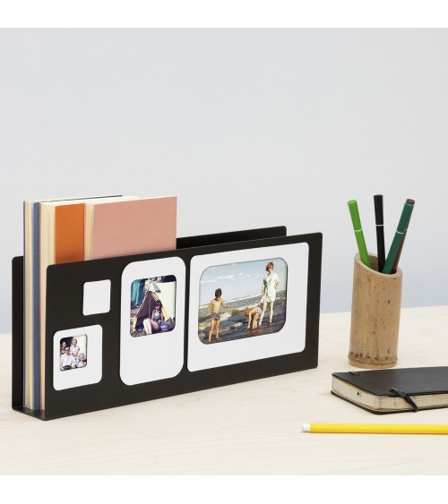 Un porte lettres très pratique à déposer dans son entrée ou sur son bureau, avec en prime des magnets qui permettent de le personnaliser avec ses photos préférées. Matière : Tôle laquée et caoutchouc magnétique Dimensions : 34 x 14 x 5.2 cm