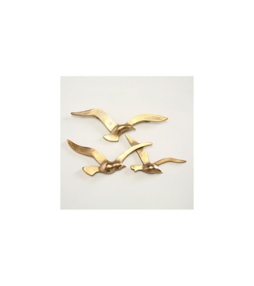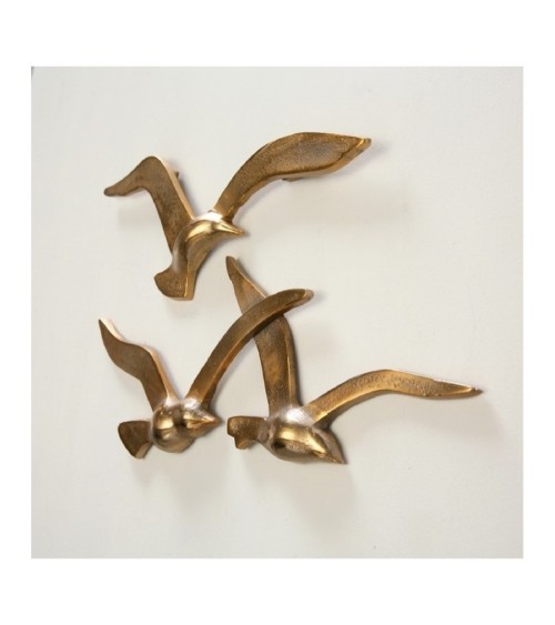 Décoration murale oiseaux en aluminium doré - Lot de 3
