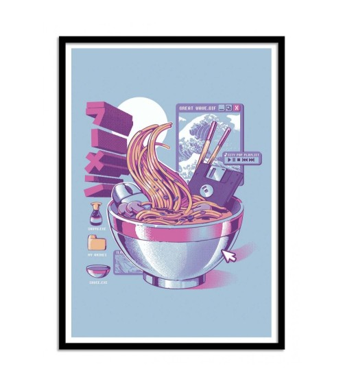 LES AFFICHES : Nos affiches sont imprimées en France, ou Union Européenne.Papier issu de forêts certifiées FSC.Affiche imprimée sur papier couché mat 250g, Haute Définition.Pour les formats d'affiches 30x40 cm : contient des marges blanches de 1,5 cm.Pour les formats d'affiches 50x70 cm : contient des marges blanches de 2 cm.OPTION CADRES : Nos cadres en bois sont fabriqués en France.Comprend une vitre en verre acrylique.Dimensions des cadres en bois 30x40 cm : Epaisseur du cadre : 15 mm, Profondeur du cadre : 20 mmDimensions des cadres en bois 50x70 cm : Epaisseur du cadre : 15 mm. Profondeur du cadre : 20 mm. Ilustrata, designer brésilien, maitrise à la perfection les codes graphiques et culturels de la Pop Culture Japonaise et du manga, avec beaucoup de talent et d'humour !