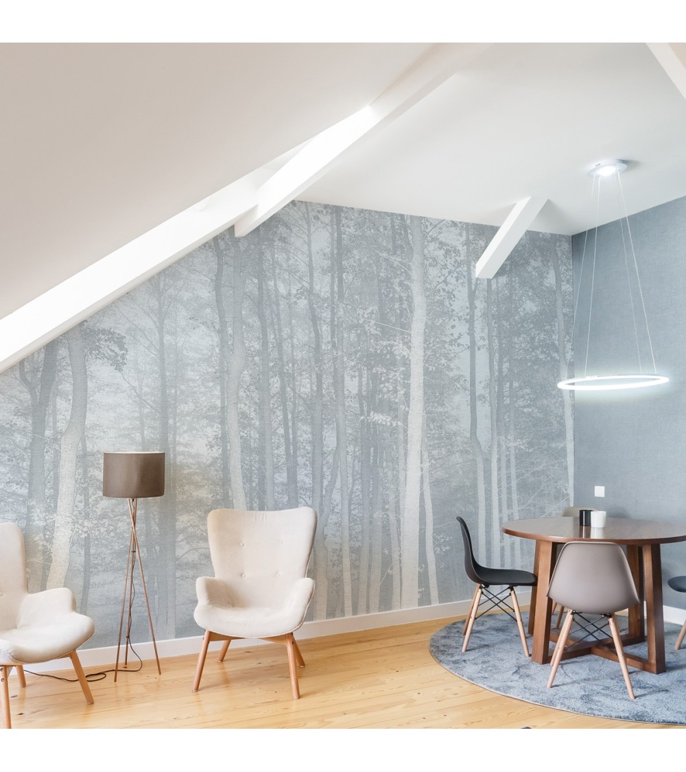 Évadez-vous dans cette forêt enchantée et découvrez ses pouvoirs magiques avec ce papier peint panoramique. Papier peint Intissé Lessivable Lisse Mat 160g sans PVC à encoller - Encres Latex sans solvant et sans COV - Classement au feu M1 - Fabrication Française.3 couleurs aux choix : Vert, beige et gris.4 tailles aux choix : - M : Lg 170 x Ht 250 cm en 2 lés de 85 cm- L : Lg 255 x Ht 250 cm en 3 lés de 85 cm- XL : Lg 340 x Ht 250 cm en 4 lés de 85 cm- XXL : Lg 425 x Ht 250 cm en 5 lés de 85 cm. Recouvrement de 2 cm entre chaque lé pour double coupe. Intissé à base de fibres cellulosiques et polyester liées par un acrylique sans PVC 160g. Impression encres Latex sans solvant et sans COV. Classement au feu M1.Aspect mat lisse (calandré). Très bon rendu des couleurs. Très bonne stabilité dimensionnelle. Cache les petites imperfections du mur, la préparation du mur est simplifiée. Bonne résistance à la déchirure lors de la pose. Pose facile. Se nettoie à l'éponge avec de l'eau savonneuse.Pose simple avec encollage du mur.