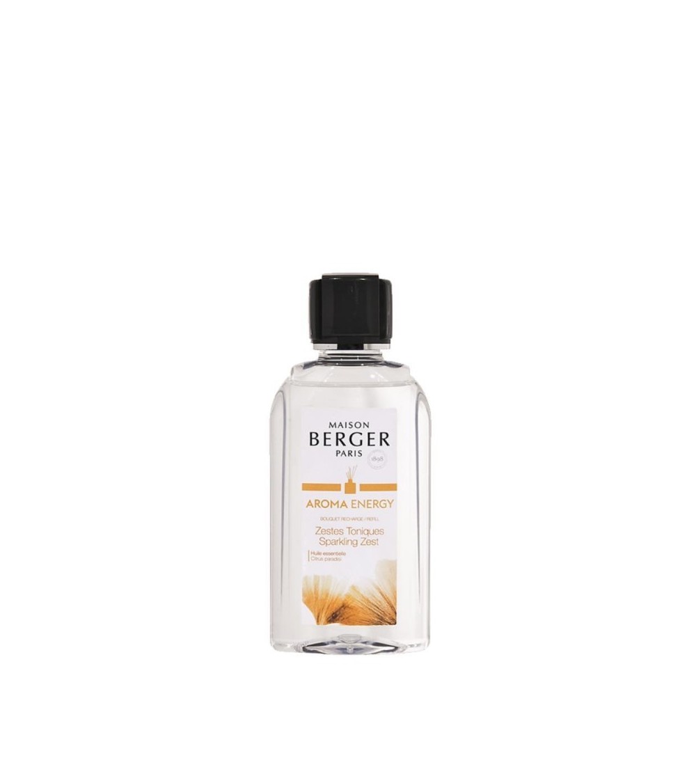 Un parfum zesté d'une extrême fraîcheur pour une ambiance dynamique et énergisante. Une envolée d'héspéridés arrondie par un voile de musc.Recharge pour bouquet parfumé contenant 200ml du parfum AROMA Energy Zestes Toniques.Temps de diffusion de + ou 8 semaines pour se dynamiser, se revigorer.Contient de l'huile essentielle de pamplemousse pour accentuer l'effet positivant, tonique et rafraîchissant, pour améliorer la concentration et la créativité, donner de l'entrain, diminuer les angoisses et l'anxiétéParfum garanti sans colorants, développé en France par des maîtres parfumeurs.Conseils d'utilisation : Utilisez ce parfum de maison avec votre bouquet brins, et retournez vos tiges régulièrement pour réactiver la diffusion, votre énergie en sera accentuée. Notes de tête : Pamplemousse, Orange Notes de coeur : Pamplemousse, Ananas Notes de fond : Musc, Pêche