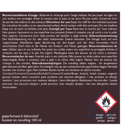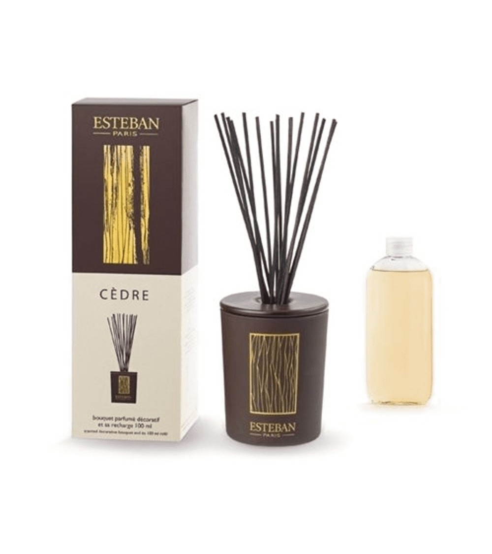 Diffusion permanente à froid pendant plusieurs semaines et rechargeable à l'infini grâce à la recharge pour bouquet.Contient: vase décoratif + capot en céramique + solution parfumée 100 ml + tiges à parfums 22 cm Un parfum boisé frais une échappée vers des contrées où la nature respire, sauvage et majestueuse.Notes de tête : pamplemousse, muscadeNotes de cur : cèdre, girofle, patchouliNotes de fond : santal, baume, vanille