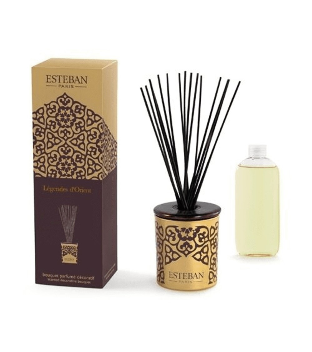 Diffusion permanente à froid pendant plusieurs semaines et rechargeable à l'infini grâce à la recharge pour bouquet.Contient: vase décoratif + capot en céramique + solution parfumée 100 ml + tiges à parfums 22 cmUn parfum oriental épicéEntre épices, fleurs et ambre, Légendes d'Orient est un souffle tout droit venu d'Orient. Notes de tête: mandarine, girofle, macisNote de cur: jasmin, gardénia, patchouliNotes de fond: santal, ambre musqué, tonka