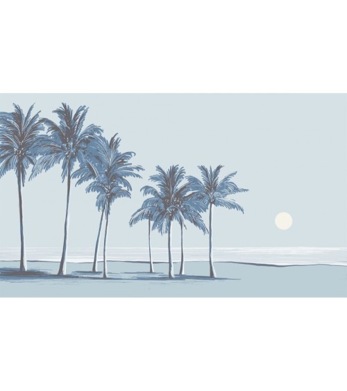 Studio Romiche créé des illustrations autour du respect de l'environnement et des découvertes de paysages extraordinaires. Ce papier peint panoramique Palmiers est une invitation au voyage. Papier peint Intissé Lessivable Lisse Mat 160g sans PVC à encoller - Encres Latex sans solvant et sans COV - Classement au feu M1 - Fabrication Française5 couleurs aux choix : Bleu, gris, brun, brun clair et brun foncé4 tailles aux choix : - M : Lg 170 x Ht 250 cm en 2 lés de 85 cm- L : Lg 255 x Ht 250 cm en 3 lés de 85 cm- XL : Lg 340 x Ht 250 cm en 4 lés de 85 cm- XXL : Lg 425 x Ht 250 cm en 5 lés de 85 cm. Recouvrement de 2 cm entre chaque lé pour doubleIntissé à base de fibres cellulosiques et polyester liées par un acrylique sans PVC 160g. Impression encres Latex sans solvant et sans COV. Classement au feu M1.Aspect mat lisse (calandré). Très bon rendu des couleurs.