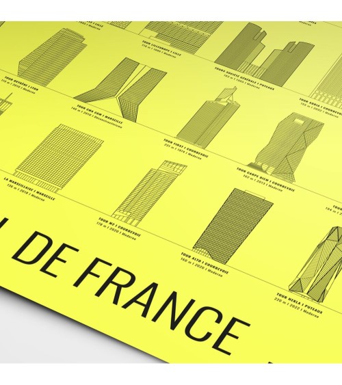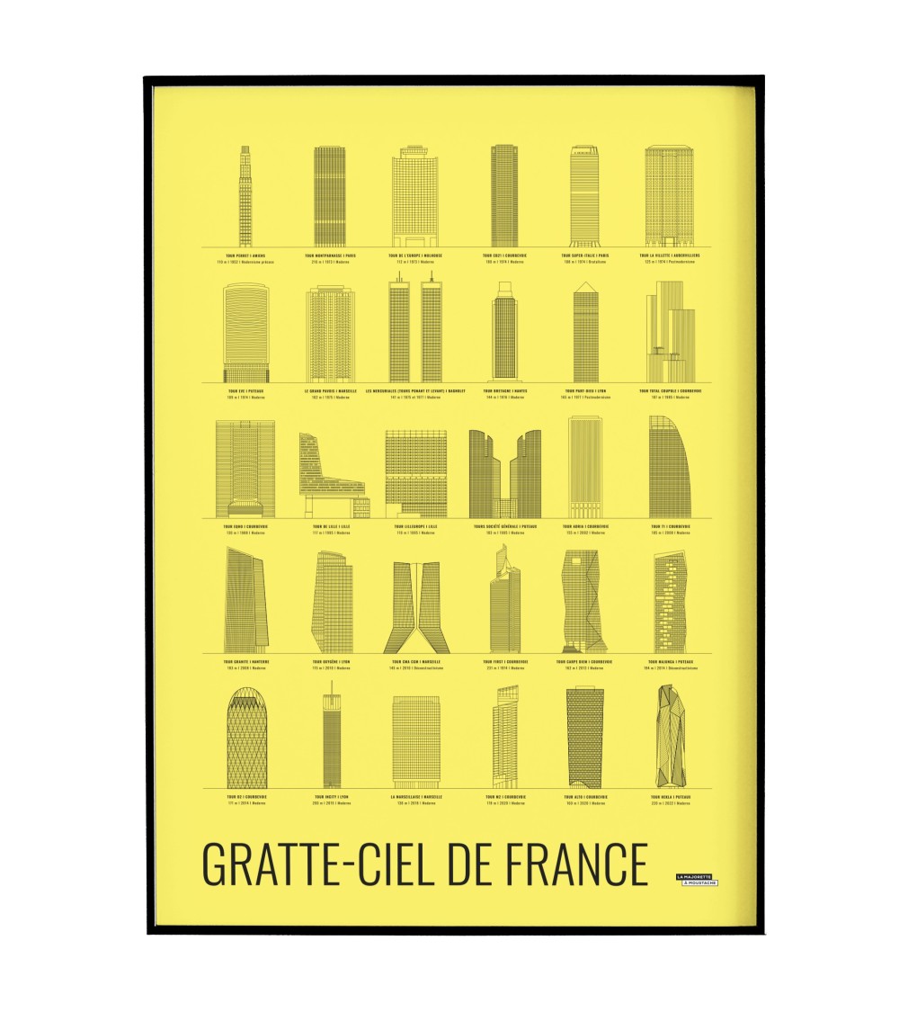 Les plus hauts gratte-ciel français sont illustrés sur cette affiche design ! Admirez les sublimes bâtiments de très grande hauteur qui sublime les villes comme la Tour futuriste D2, la botte de Lille ou encore la surréaliste tour Hekla. Pour les fans d'architecture urbaine ! * Format 50 X 70 cm* Imprimée sur du papier mat 200g haute qualité* Expédiée seule (compatible avec encadrement standard)* 100% Made in FranceLa Majorette à Moustache, c'est une collection d'affiches et de cartes postales dédiées à la culture française.Éducatifs, graphiques et humoristiques, nos produits revisitent de nombreux thèmes pour (re)découvrir notre beau pays: foot, vignobles, architecture, ou encore les icones mythiques de la chanson française.Avec ses valeurs, La Majorette décline une gamme haute en couleur, richement illustrée et au design graphique soigné. N'hésitez plus, affichez sur vos murs votre amour de la Pop Culture FR !