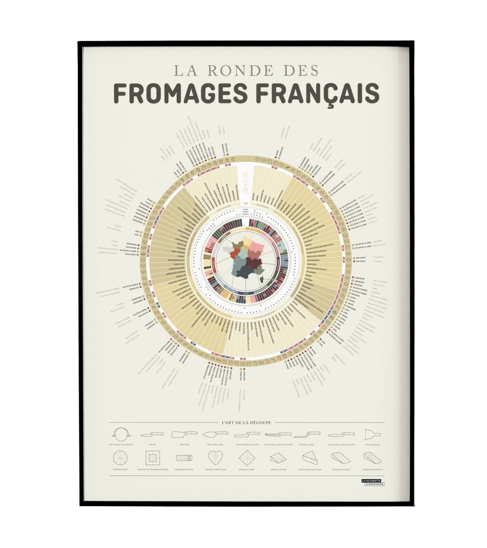 Une affiche qui recense sous forme d'infographie les nombreuses variétés de fromages français, leurs modes de dégustations et leurs accords vins. Résolument contemporaine et design, cette affiche séduira tous les fondus de fromage. * Format 50 X 70 cm* Imprimée sur du papier mat 200g haute qualité* Expédiée seule (compatible avec encadrement standard)* 100% Made in FranceLa Majorette à Moustache, c'est une collection d'affiches et de cartes postales dédiées à la culture française.Éducatifs, graphiques et humoristiques, nos produits revisitent de nombreux thèmes pour (re)découvrir notre beau pays: foot, vignobles, architecture, ou encore les icones mythiques de la chanson française.Avec ses valeurs, La Majorette décline une gamme haute en couleur, richement illustrée et au design graphique soigné. N'hésitez plus, affichez sur vos murs votre amour de la Pop Culture FR !