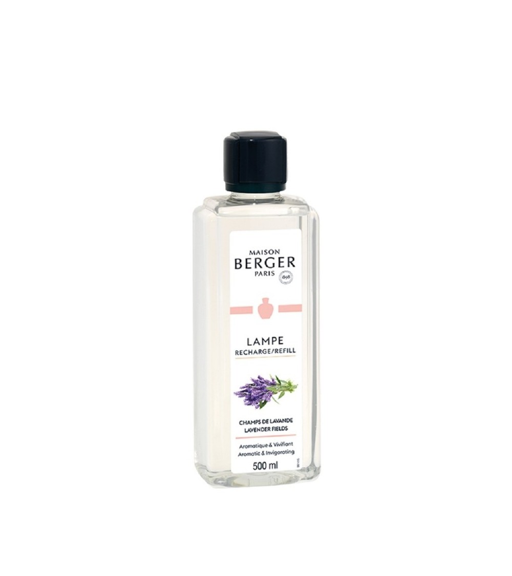 La recharge parfumée lampe Berger Champs de Lavande délivre d'odorants arômes de lavandin. Cette fragrance très fleurie, naturelle et féminine, vous offre une balade olfactive d'une rare intensité. Les notes résineuses de baume et les notes fraîches d'eucalyptus se mélangent à la lavande et forment cette composition, fidèle à la réalité. Disponible aussi en format 1 litre.Marque : Maison Berger Paris c'est 120 ans d'histoire qui commencent par une idée, celle de Maurice Berger. En 1898, celui-ci souhaite désinfecter l'atmosphère de certains lieux qui nécessitent un bon niveau d'hygiène au quotidien, comme les hôpitaux, en utilisant le système à catalyse. Il met donc au point sa propre lampe : la Lampe Berger et dépose un brevet pour son invention.Gestuelle : Depuis 1898, la Lampe Berger est entrée dans le quotidien des français. Destinée au départ à purifier l'air en neutralisant les odeurs, elle fut transformée en objet décoratif et parfumant dans l'entre-deux-guerres, investissant progressivement la sphère privée. Sa double action est aujourd'hui très appréciée.Parfums : Élaborés par les maîtres-parfumeurs grassois en collaboration avec le service recherche et développement de la marque, chaque parfum Maison Berger Paris est unique. Une large offre de fragrances est disponible.L'exigence est à son plus haut niveau concernant la qualité des produits proposés, les substances diffusées sont régulièrement contrôlées par des laboratoires indépendants. C'est la garantie pour vous de l'absence de fumées et de polluants dans l'air.Mentions légales : Isopropanol. Liquide et vapeurs très inflammables. Provoque une sévère irritation des yeux. Peut provoquer somnolence ou vertiges. Dangereux. Respecter les précautions d'emploi.