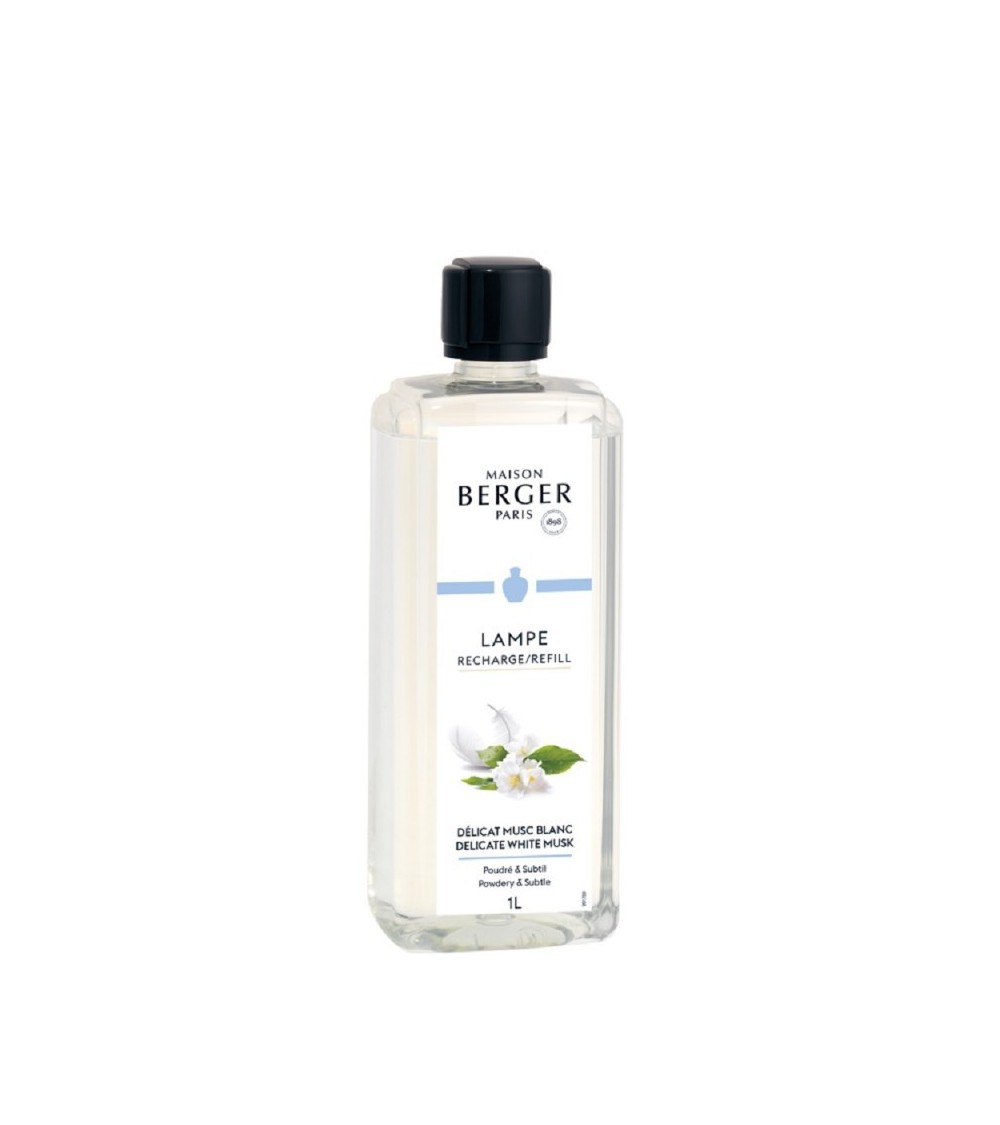 La Recharge Lampe Délicat Musc Blanc s'ouvre sur la fraîcheur du petitgrain et la légèreté zestée de l'orange et du pamplemousse. Puis les notes poudrées de fleur d'oranger subliment les accords floraux de la rose et du jasmin. Les muscs blancs finissent par révéler la subtilité olfactive du cèdre et des bois ambrés. Ce parfum apporte une touche de douceur à votre intérieur tout en étant délicat et chic. Les matières premières utilisées dans ce parfum vous invite à un voyage autour du monde qui commence par les terres ensoleillées du Brésil, puis, qui se poursuit avec une promenade au marché aux fleurs d'Amsterdam pour finir sur les cimes majestueuses de l'Himalaya. La Recharge Lampe Délicat Musc Blanc déploie toutes ses facettes olfactives et pures. Ce parfum de maison pour lampe à catalyse est véritablement confortable, subtil et doux et vous apportera quelques heures de bonheur. Parfum garanti sans colorant.NOTES DE TÊTE: Orange, Petitgrain, PamplemousseNOTES DE COEUR: Rose, Jasmin, Fleur d'OrangerNOTES DE FOND: Cèdre, Bois ambrés, Muscs blancsCONSEILS D'UTILISATION : L'utilisation de parfums autres que ceux de Maison Berger peut sérieusement endommager votre brûleur. Utilisez le parfum Air Pur - Neutre Essentiel pour entretenir votre brûleur.Flacon: 1 L - Durée de diffusion: 40h de diffusion - 160h de parfumage