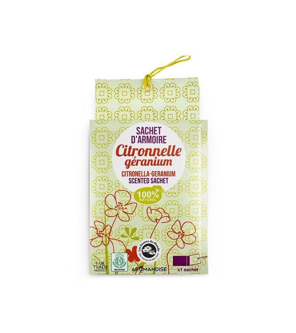 Ce sachet parfumé aux huiles essentielles de citronnelle, vétiver, lavande et eucalyptus, est idéal en toutes saisons pour parfumer votre linge et vos placards.