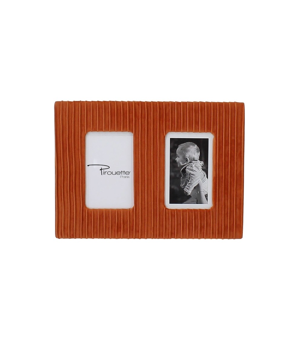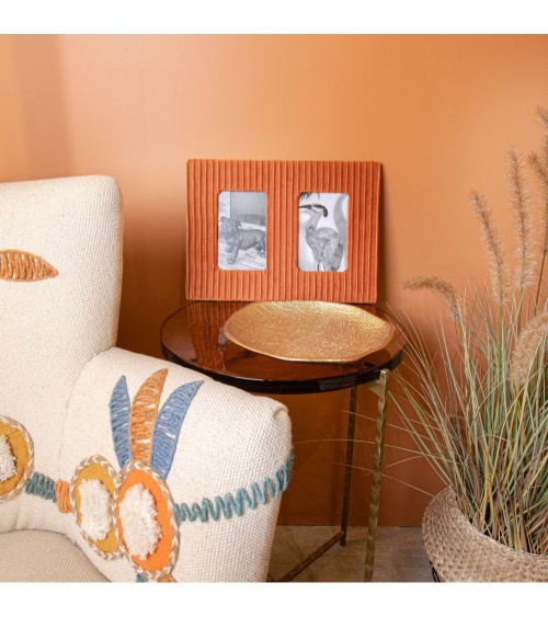 Habillé votre intérieur de ce jolie cadre photos en velours plissé terracota pour un style vintage et rétro. Cadre photo double Photos 10x15 cm Deux accroches murales Pieds de support Dimensions : 33x 24 x 1 cmNettoyer à l'aide d'un chiffon sec
