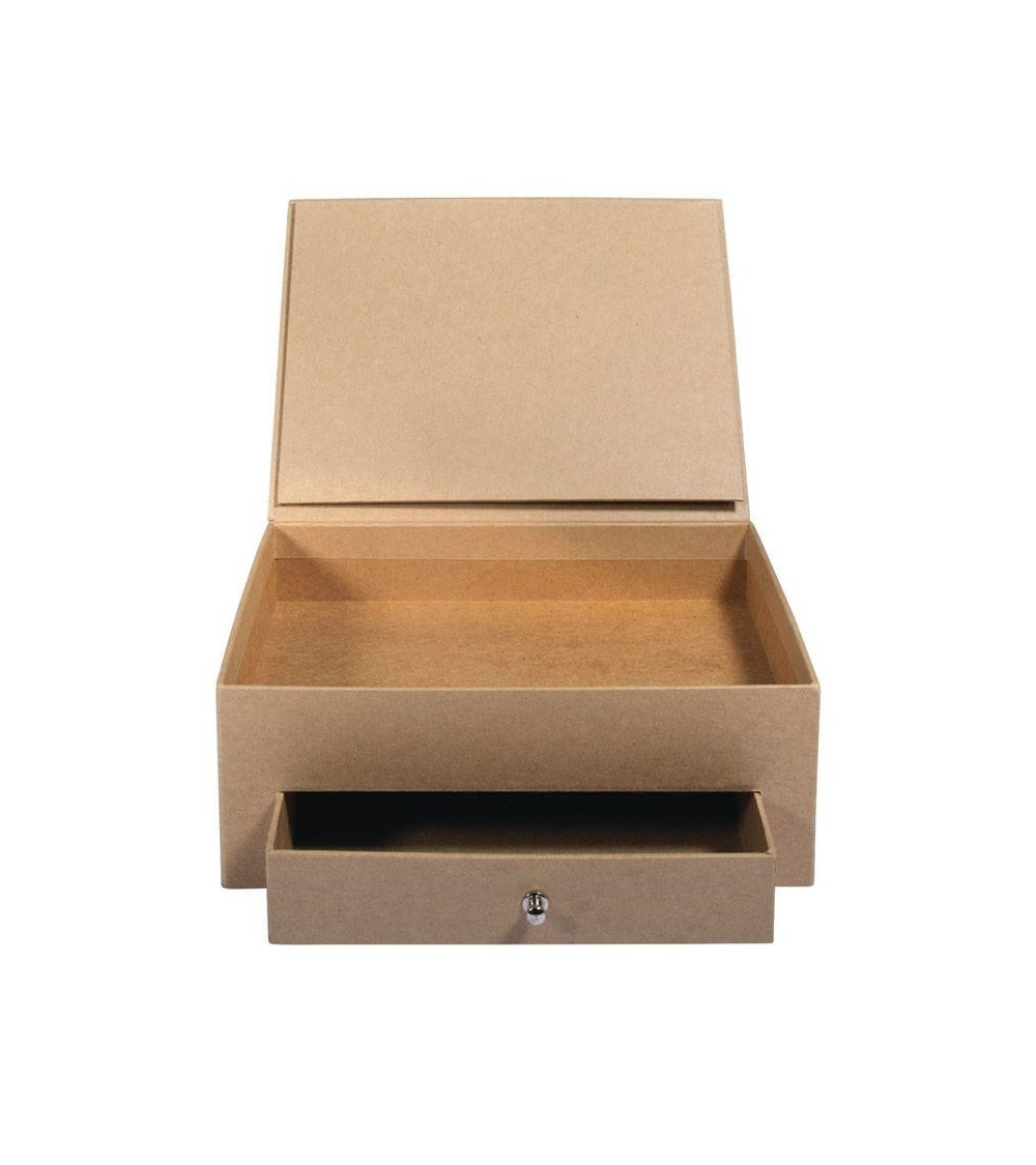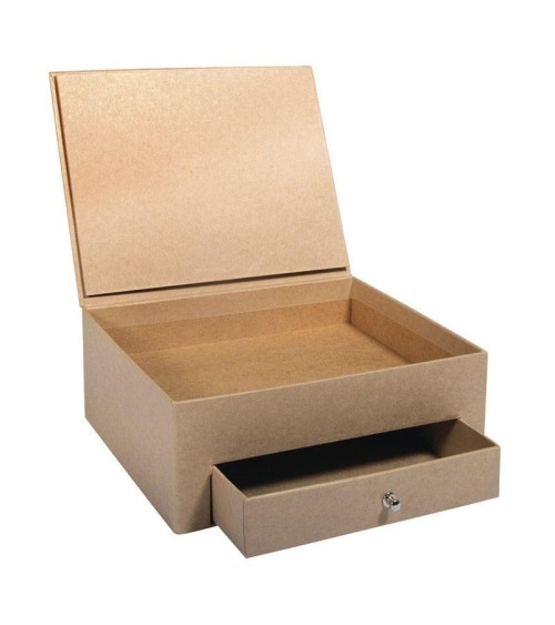 Boîte papier mâché avec tiroir. Customisez cette boîte en papier mâché de 20 cm et rangez-y vos photos, clés, bijoux