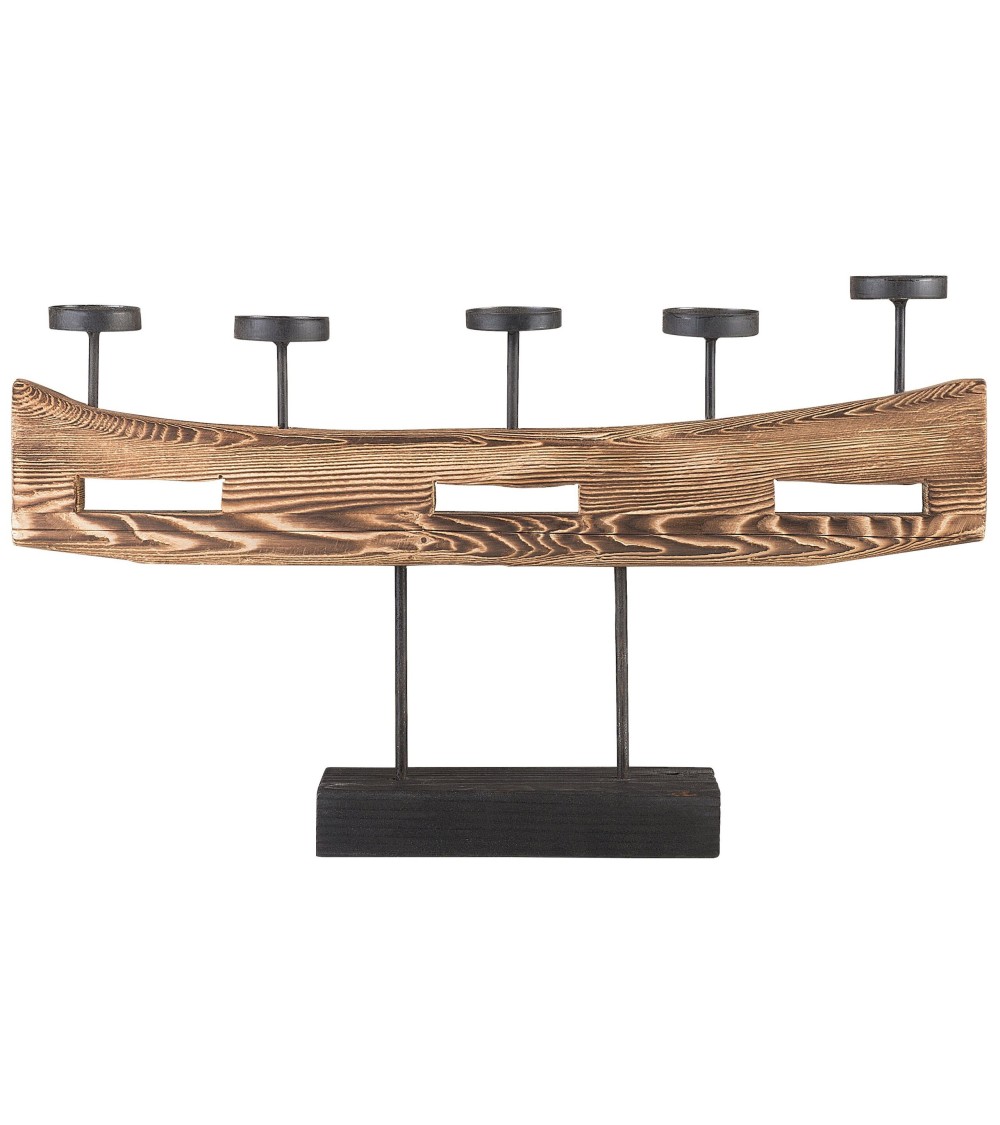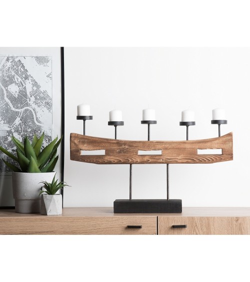 Chandelier en bois de pin 5 bougies. Décorez vos intérieurs avec ce bougeoir d'inspiration industrielle et urbaine. Fait à la main avec du bois de pin de haute qualité, il vous servira de décor original pendant de nombreuses années. Il s'insère facilement dans chaque pièce et s'adapte parfaitement à la plupart des décors. Prévu pour porter jusqu'à 5 bougies, il sera non seulement un ajout fabuleux et élégant à tout espace de vie, mais contribuera aussi à l'éclairage ambiant et chaleureux de vos intérieurs.Détails: Type de produit: Bougeoir Style: Industriel Couleur principale: Bois clair Type de matière: Bois solide Matière principale: Bois de pin Matière secondaire: Métal Fabriqué à la main: Oui Dimensions: Profondeur: 11 cm Largeur: 60 cm Hauteur: 36 cm Poids: 2 kg L`offre inclue: 1 x Bougeoir Caractéristiques clés: Un style simple s'adaptant à tout type d'intérieur, Meuble attrayant pour l'intérieur, Finition précise, Matières de haute qualité, Facile à entretenir Informations d`assemblage: Ne nécessite pas d'assemblage Informations supplémentaires: Chaque produit de ce modèle est fait à la main et donc unique, la nuance et le motif peuvent être légèrement différents du modèle présenté sur l'image. Conseils de maintenance: Bois de pin: 1.Essuyez immédiatement après le nettoyage pour empêcher l'eau de s'accumuler sur les meubles 2.Nettoyez avec un chiffon et un nettoyant doux dans le sens du grain du bois 3.De temps en temps, il est conseillé de mettre une nouvelle couche d'huile sur les meubles avec une finition huilée.