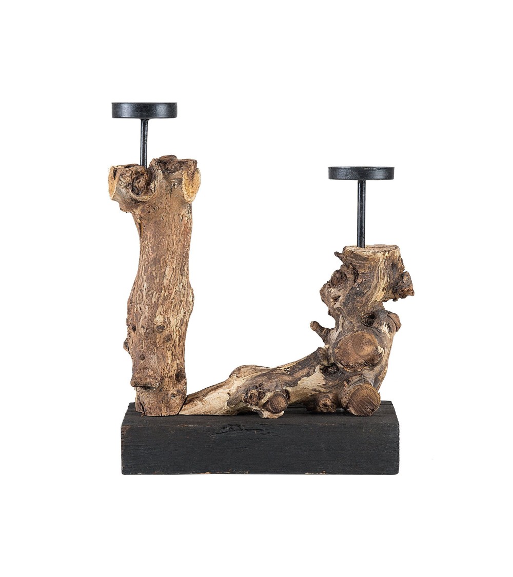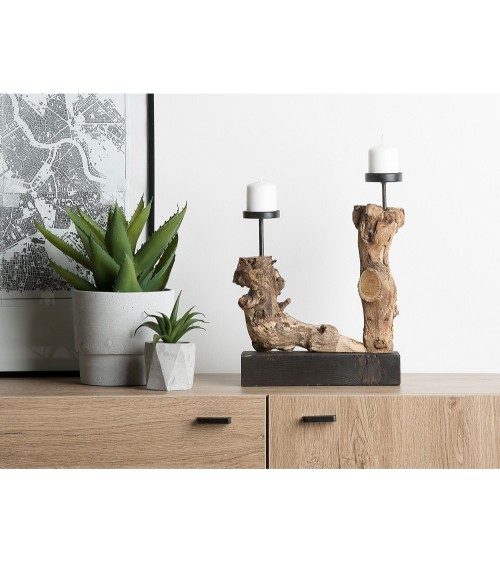 Bougeoir de style industriel et rustique en bois naturel. Ajoutez une touche de style industriel à vos intérieurs grâce à ce bougeoir en bois brut naturel. Fait à la main et exceptionnellement durable, c'est un mélange parfait de fonctionnalité et de style qui s'insère parfaitement dans chaque pièce. Placez-le sur une commode dans votre chambre à coucher ou comme pièce maîtresse sur la table basse de votre salon pour y créer instantanément une atmosphère chaleureuse. Allumez les bougies et savourez le moment.Détails: Type de produit: Bougeoir Style: Rustique Couleur principale: Bois clair Type de matière: Bois solide Matière principale: Bois solide Matière secondaire: Métal Fabriqué à la main: Oui Dimensions: Profondeur: 12 cm Largeur: 25 cm Hauteur: 33 cm Poids: 2 kg L`offre inclue: 1 x Bougeoir Caractéristiques clés: Fabriqué à la main avec le plus grand soin, Un style simple s'adaptant à tout type d'intérieur, Décoratif et fonctionnel, Matières de haute qualité, Matière naturelle Informations d`assemblage: Ne nécessite pas d'assemblage Informations supplémentaires: Chaque produit est fait à la main, il pourrait donc y avoir des différences de texture et de couleur. Ce sont des caractéristiques d'authenticités du matériau et ne sont en aucun cas considérés comme un défaut. Conseils de maintenance: Bois solide: 1.Essuyez immédiatement après le nettoyage pour empêcher l'eau de s'accumuler sur les meubles 2.Nettoyez avec un chiffon et un nettoyant doux dans le sens du grain du bois 3.De temps en temps, il est conseillé de mettre une nouvelle couche d'huile sur les meubles avec une finition huilée.