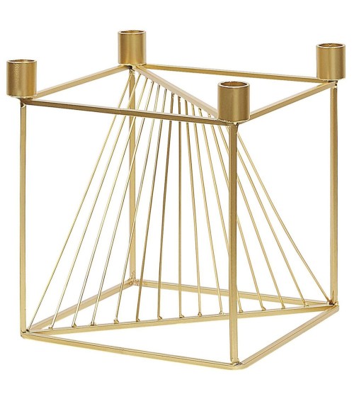 Bougeoir design en métal doré pour 4 bougies. Introduisez une touche dorée dans votre salon. Ce bougeoir design de forme unique apportera beaucoup de charme à chaque buffet, table d'appoint ou table à manger, et illuminera votre l'intérieur avec une lumière chaleureuse. Prévu pour 4 bougies, ce chandelier en métal est un accessoire de décoration parfait pour chaque salon ou chambre moderne, glamour et chic. Vous allez l'adorer, c'est plus que sûr !Détails: Type de produit: Bougeoir Style: Glamour Couleur principale: Doré Type de matière: Métal Matière principale: Métal Fabriqué à la main: Non Dimensions: Profondeur: 20 cm Largeur: 20 cm Hauteur: 23 cm Poids: 1 kg L`offre inclue: 1 x Bougeoir Caractéristiques clés: Style élégant, Meuble attrayant pour l'intérieur, Matériau léger et robuste, De haute qualité, Facile à entretenir Informations d`assemblage: Ne nécessite pas d'assemblage Conseils de maintenance: Métal: 1. Nettoyez avec un chiffon et un détergent doux, essuyez bien ensuite 2.Pour les éléments en cuivre ou chromés, utilisez un produit de polissage spécial 3.Pour éviter les rayures, n'utilisez pas de nettoyants abrasifs.