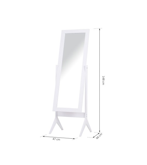 Mélant élégance et modernité, ce miroir s'intégrera en parfaite harmonie dans votre chambre ou dressing.Caractéristiques :- Style contemporain sobre très élégant- Idéale pour une intégration en parfaite harmonie dans votre chambre, dressing- Grand miroir frontal avec inclinaison réglable à 2 niveaux vous permettant d'essayer de façon pratique vos bijoux ou accessoires suivant votre tenue- Conception et fabriquation en MDF robuste pour un usage pérenneSpécifications :- Couleur : blanc- Matériaux principaux : MDF classe E1, verre- Dim. totales : 47l x 46P x 148H cm- Dim. miroir : 118L x 42l cm- Accessoires fournis : 4 vis et écrous de fixation de pied, 2 vis de fixation de miroir, 2 boulons pour le réglage d'angle- Livraison effectuée en un colis- Réf. : 831-268WT