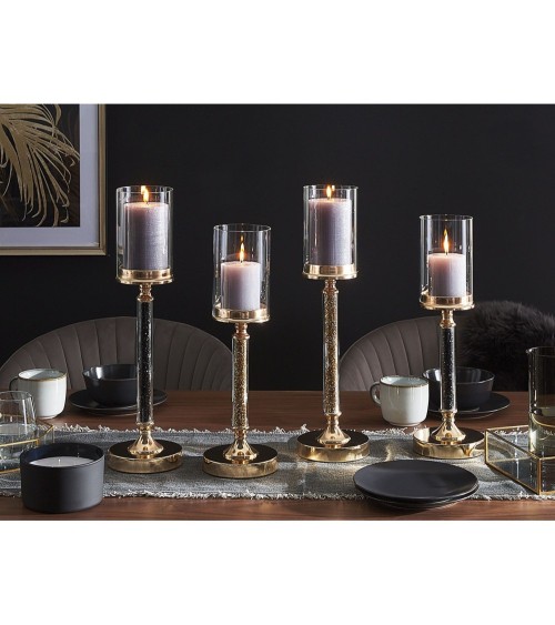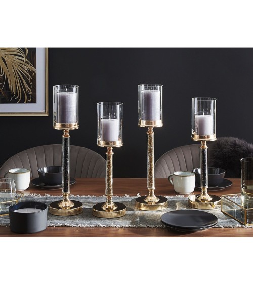 Bougeoir décoratif en verre avec pied doré pour bougie pilier. illuminez votre table et vos yeux grâce à ce bougeoir ultra-glamour. Posé sur une commode ou une table, ce photophore avec son pied doré pailleté et sa coupe en verre pourra embellir n'importe quelle pièce. Parfait pour une bougie pilier, il fera aussi un magnifique ajout au décor de votre table. Laissez-vous séduire par ce bougeoir original. Où que vous le placiez, l'effet wow sera assuré.Détails: Type de produit: Bougeoir Style: Glamour Couleur principale: Doré Type de matière: Verre Matière principale: Verre Finition: Brillant Fabriqué à la main: Non Dimensions: Profondeur: 13 cm Largeur: 13 cm Hauteur: 48 cm Poids: 1 kg L`offre inclue: 1 x Bougeoir Caractéristiques clés: Convient pour les bougies piliers et les bougies chauffe-plat, Un style simple s'adaptant à tout type d'intérieur, Finition à la fine pointe de la mode, Style chic, Meuble attrayant pour l'intérieur Informations d`assemblage: Ne nécessite pas d'assemblage Conseils de maintenance: Verre: 1.Nettoyez avec un chiffon et un nettoyant doux ou un conditionneur pour verre. Essuyez immédiatement après le nettoyage 2.Pour éviter les rayures, n'utilisez pas de nettoyants crème. Métal: 1. Nettoyez avec un chiffon et un détergent doux, essuyez bien ensuite 2.Pour les éléments en cuivre ou chromés, utilisez un produit de polissage spécial 3.Pour éviter les rayures, n'utilisez pas de nettoyants abrasifs.